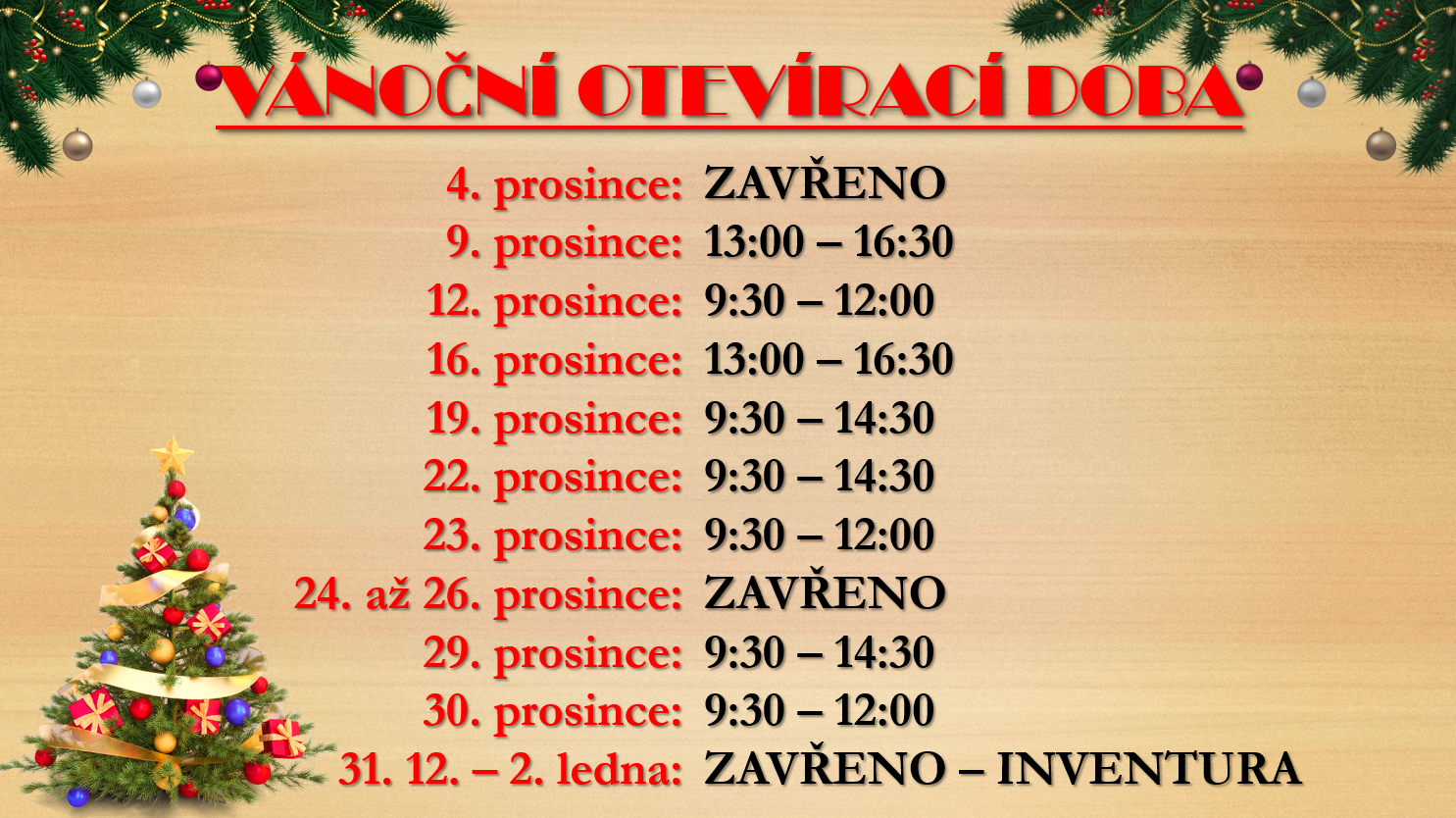 Mimo uvedené termíny, bude otevírací doba, dle standardní otevírací doby.