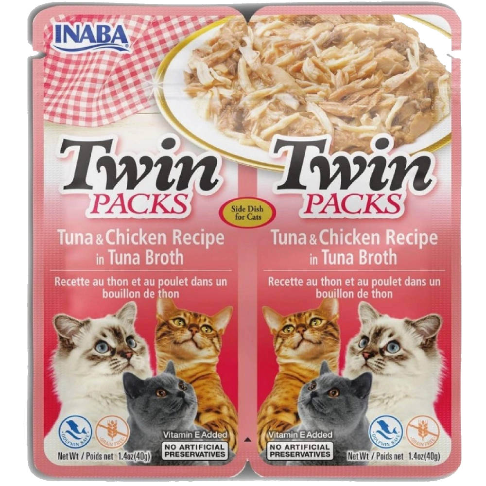 Doplňkové krmivo pro kočky. Receptura s tuňákem a kuřecím masem ve vývaru z tuňáka.